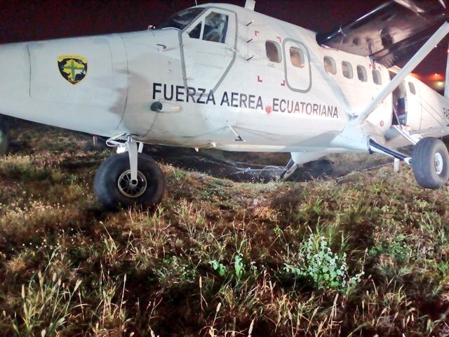 Ekvador Hava Kuvvetleri ( Ecuadorian Air Force – Fuerza Aérea Ecuatoriana )’ne ait FAE452 kuyruk numaralı DHC-6 Twin Otter tipi askeri uçak Guayaquil havalimanında kalkış için taksi yaptığı sırada henüz bilinmeyen bir nedenden dolayı pistin kenarındaki taşla döşenmiş kısma çıktı ve pist kenarındaki hendeğe düştü. Olayda ölen yada yaralanan olmazken uçakta orta derecede hasar oluştuğu belirtildi.