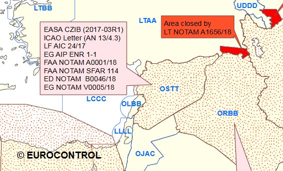 “Eurocontrol: Rapid ALERT Notification for Eastern Mediterranean Airspace: Due to the possible launch of air strikes into Syria with air-to-ground and / cruise missiles the possibility of disruption of radio navigation equipment needs to be taken into consideration for flight ops.”