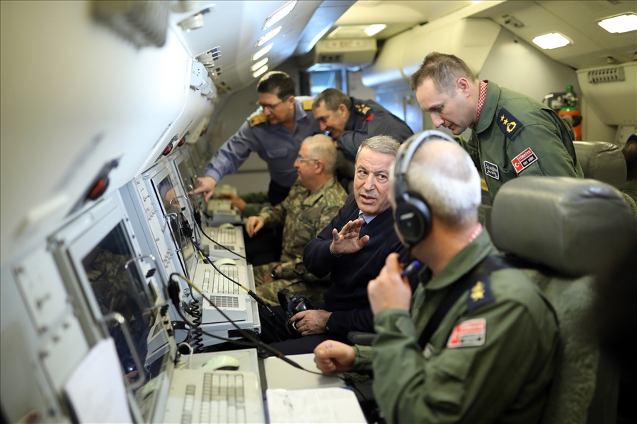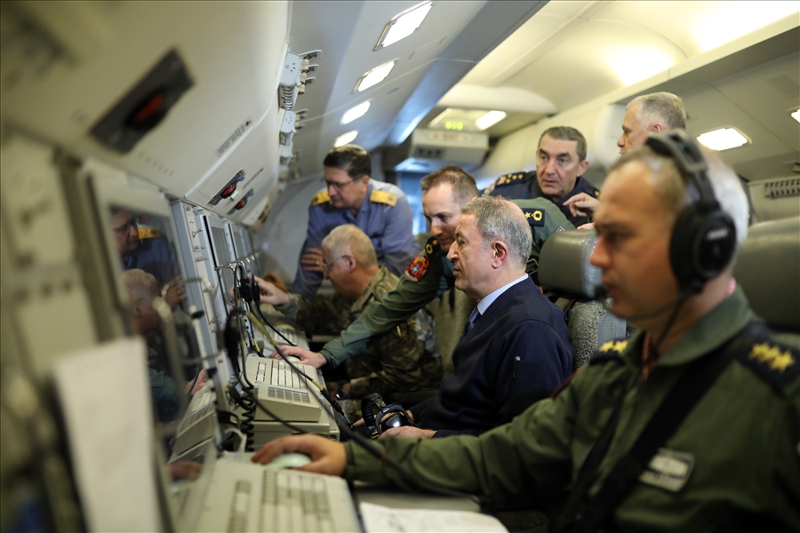İlk olarak tatbikatın sevk ve idaresinin yapıldığı Gölcük’teki Donanma Komutanlığında brifing alan Bakan Akar, daha sonra “Batı” adı verilen Havadan Erken İhbar ve Kontrol (HİK) uçağında tatbikatı havadan takip etti. HİK uçağının tatbikat kapsamında Doğu Akdeniz’de gerçekleştirdiği görev uçuşuna katılan Bakan Akar ve komutanlar, uçak içinde faaliyetlere ilişkin bilgi aldı. Burada da bazı talimatlar veren Bakan Akar, daha sonra telsiz bağlantısıyla Mavi Vatan Tatbikatı’nda görev alan unsurlara seslendi. Mavi Vatan Tatbikatı’nın büyük bir başarıyla devam ettiğini ifade eden Bakan Akar, emeği geçenleri kutladı.