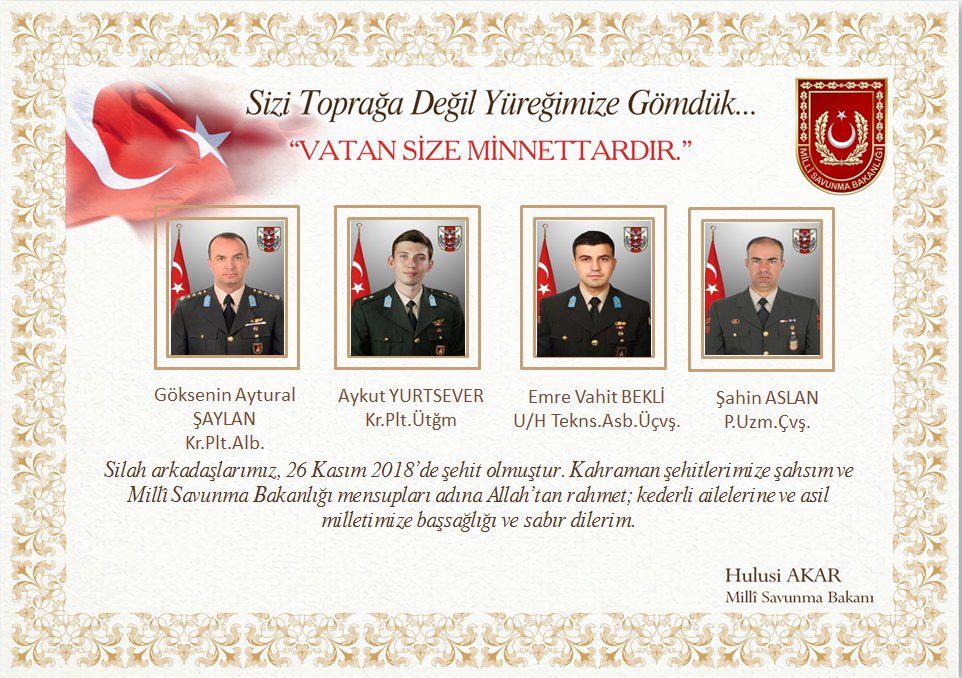 Ülke olarak bizleri yasa boğan şehitlerimize hakkımızı helal ediyoruz. Allah hepsinden razı olsun ve Allah mekanlarını cennet etsin.