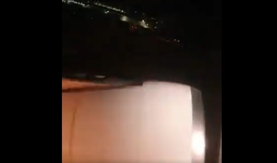 Uçağın motorunun yandığı anlar uçakta bulunun bir yolcu tarafından böyle görüntülendi.