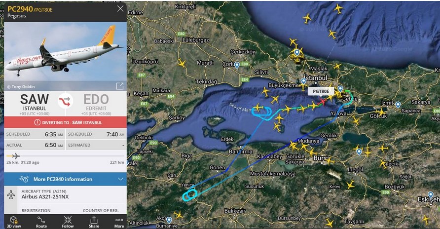 İstanbul Sabiha Gökçen Havalimanı – Edremit seferini yapan Pegasus Havayolları uçağı ise Edremit Havalimanı çevresindeki hava şartları yüzünden İstanbul Sabiha Gökçen Havalimanı’na geri dönmek, geri dönüşten sonra da havada beklemek zorunda kaldı.