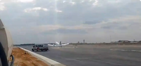 Brezilya’da bulunan Boa Vista Uluslararası Havalimanı’nın inşaat halindeki pistine üstelik pis üzerinde çalışan işçiler de varken küçük bir uçak iniş yaptı. Ayrıntılı bilginin olmadığı olay anının görüntüleri pistte bulunan bir işçitarafından böyle kaydedildi.