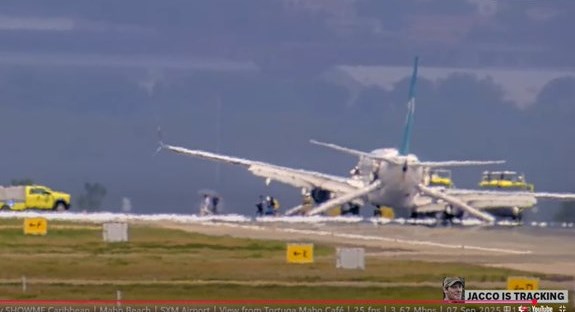 More visuals after the Boeing 737-800 plane (C-GWSR) came to a rest on Runway 10 at Sint Maarten-Princess Juliana International Airport (SXM).